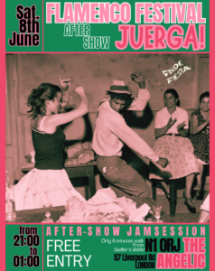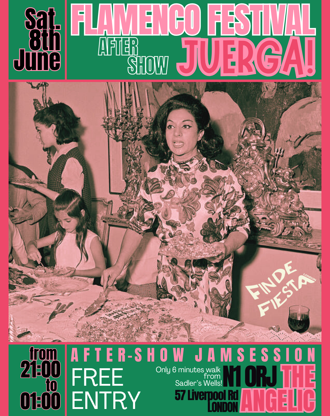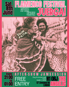 After Eva Yerbabuena’s performance of Yerbagüena (Bright Dark) at Sadler’s Wells on June 8, we’ll be gathering in the Angelic for a post-show jam.